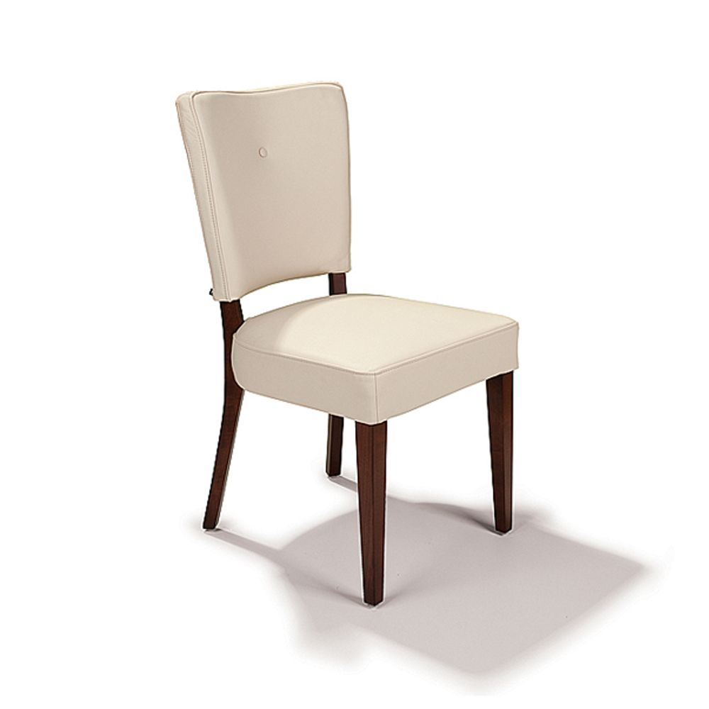 Upholstered dining side chair with Noyer brown hardwood frame. Showroom model in Chess 220 (gr.B) fabric. (Discontinued product).