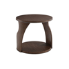 Round Brushed Quartered Oak side table in Gowan finish with Matte Tungsten details.Also available in a dark brown Charteris finish.