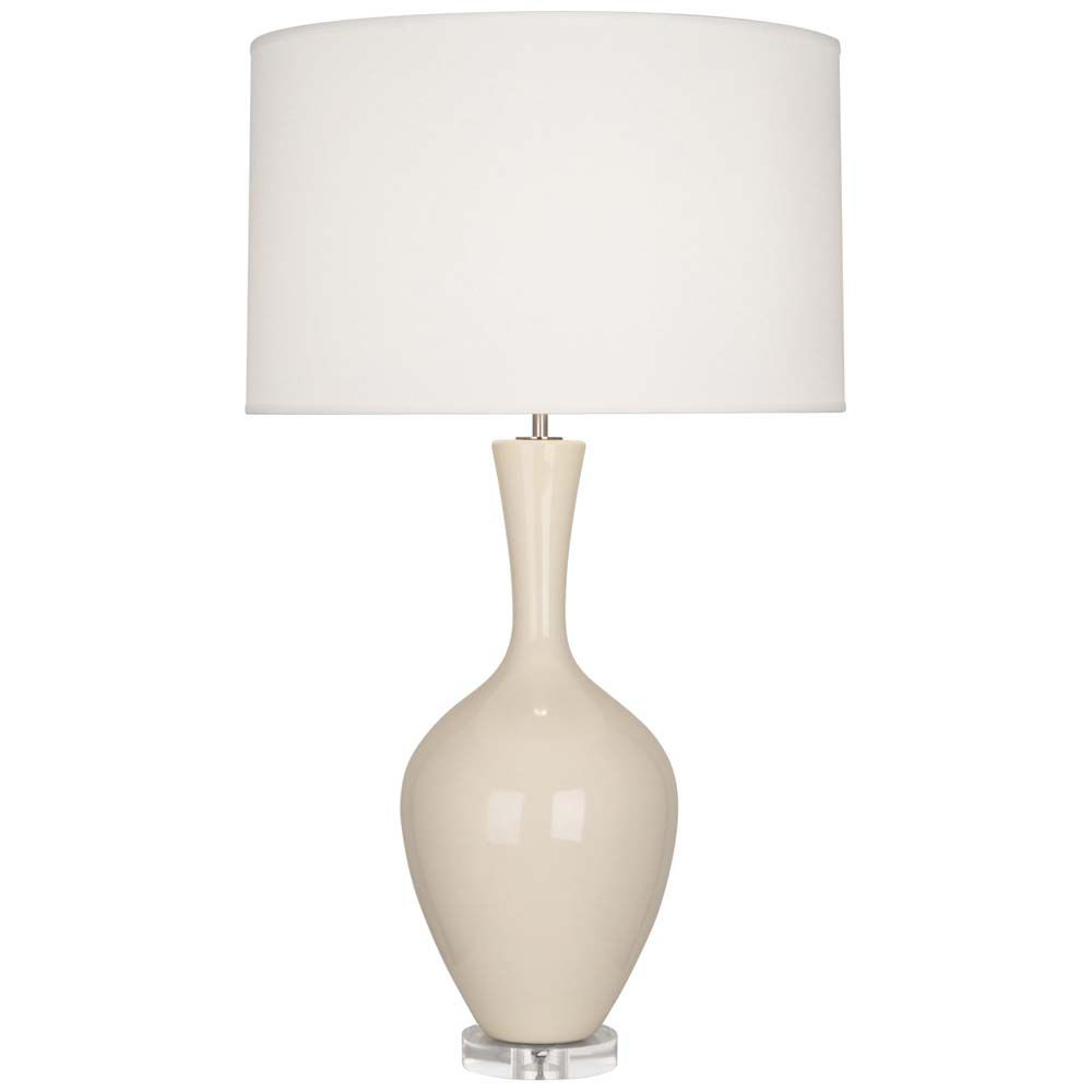Bone Glazed ceramic table lamp with Fondine Fabric shade and lucite base. Available in a range of colours.Lamp: 1 x 150w A E26 bulb