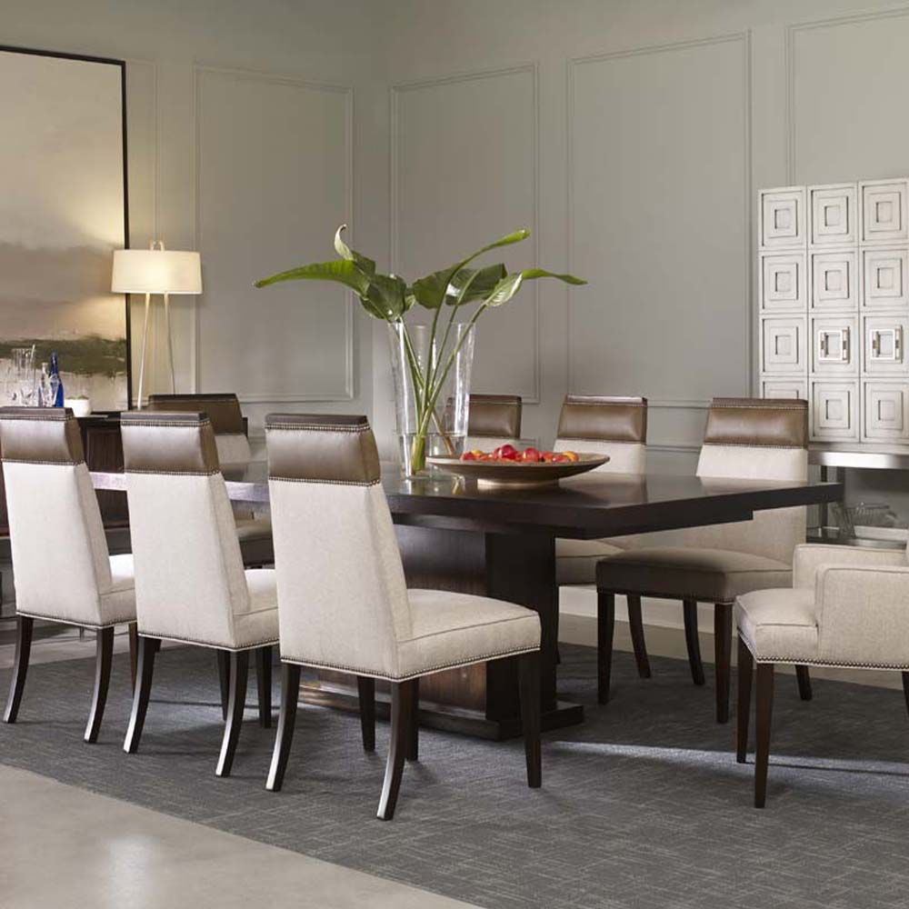 Michael Weiss collection dining table in Brownstone finish. Extends with two 20" extensions to 120" wide. Available in a range of wood finishes.