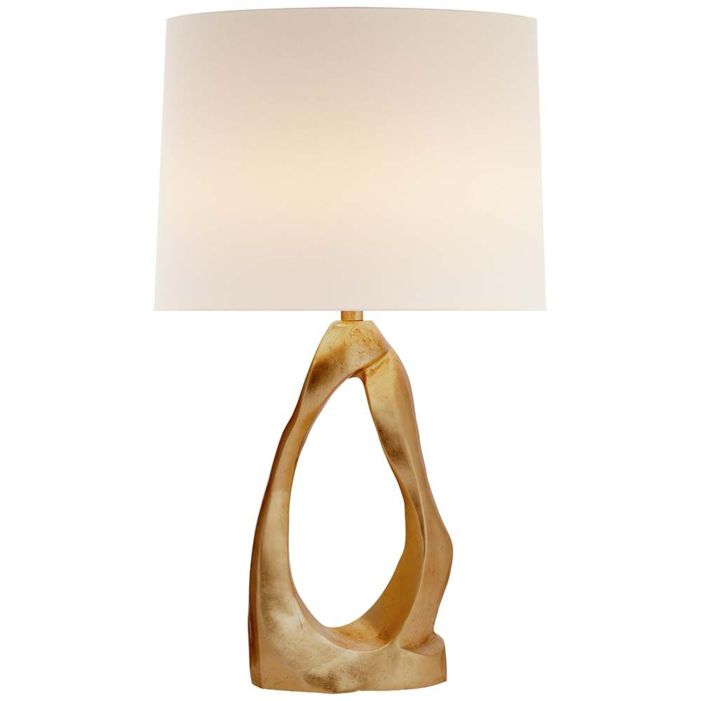 Aerin Lauder design metal table lamp in Gild with a linen shade. Finishes: BSL, CG, GLamp: 1 x 150w A E26 bulb.