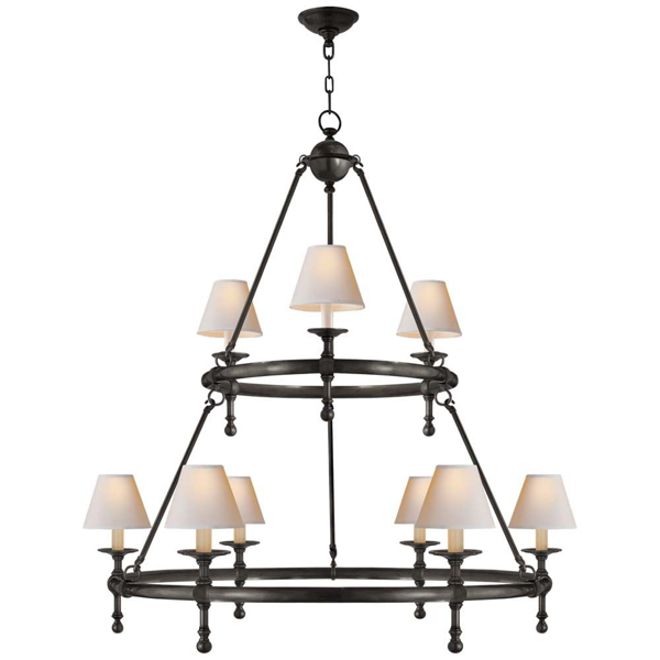 Studio Chandelier with 9 lights shown in Polished Nickel finish. Showroom model in Bronze. Shades optional. Finishes: AN, BZ, HAB, PN Lamp: 9 X 40w E12 candelabra bulbs.