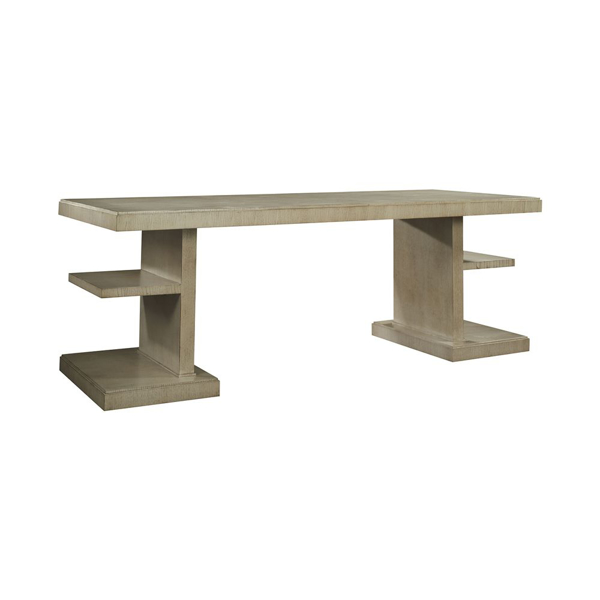 Suzanne Kasler collection ash library console table with end storage shelves. Shown in Weathered Stone finish. Available in a range of finishes.