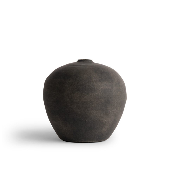 Dark Brown short hand-made ceramic vase.