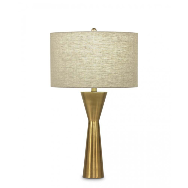 Brass table lamp with Antique Brass finish and off-white linen shade.Lamp: 1 x 150w E26 bulb.