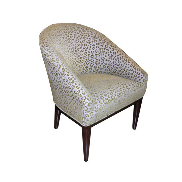 Aerin Lauder collection - upholstered lounge chair with wood base trim. Showroom model in COM fabric MX Stampede Aloe. (Discontinued line).