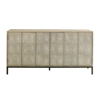 Taupe Shagreen console with textured Bronze metal base and cream lacquer interior. Two file drawers, two pull out trays and shelving inside.