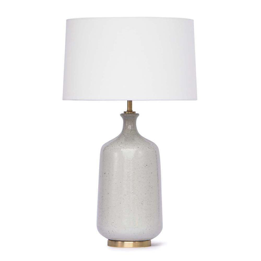 Ceramic table lamp with brass accents and white linen shade.Lamp: 1 x 150w E26 bulb