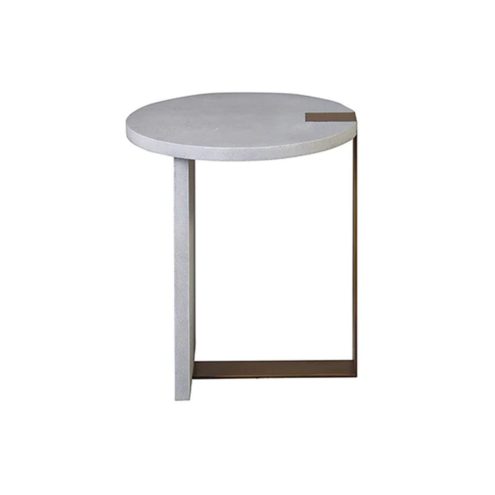 Round Light Grey Faux Shagreen covered side table with Brass accents.