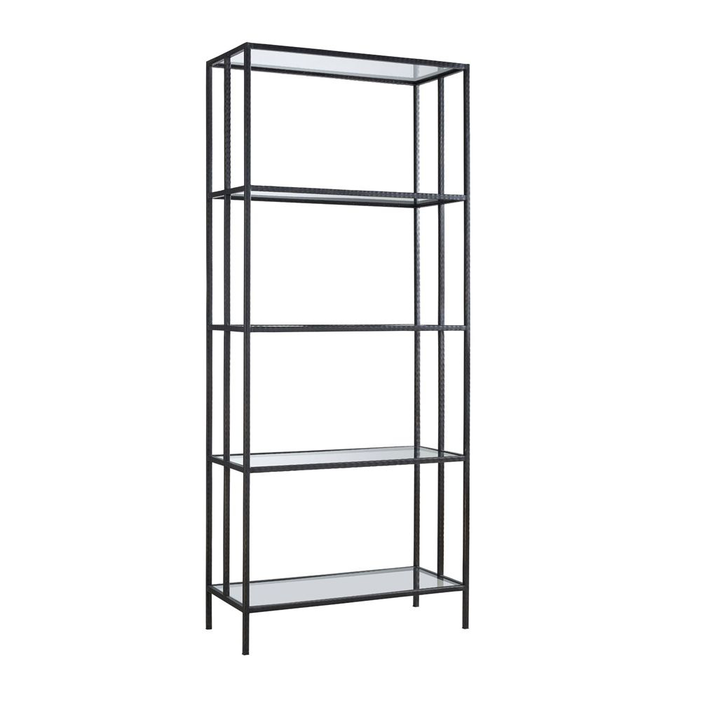 Oil Rubbed Bronze finished etagere with 5 inset glass shelves.