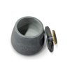 Natural soapstone box in a grey blue finish featuring a lift off lid accented with a natural agate stone handle with gold trim. Soapstone and handle are natural materials and may vary in color, grain and size.