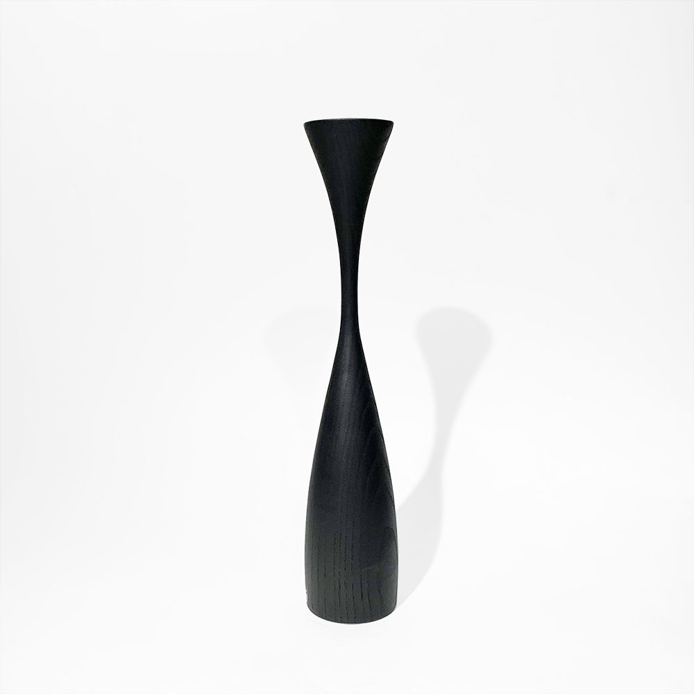 Ash turned candleholder in Black finish. Also available in White Wash finish.