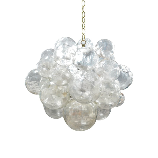 Clear cast resin bubbles form this cluster chandelier. Available with gold or silver hardware. Includes canopy and 3' chain.