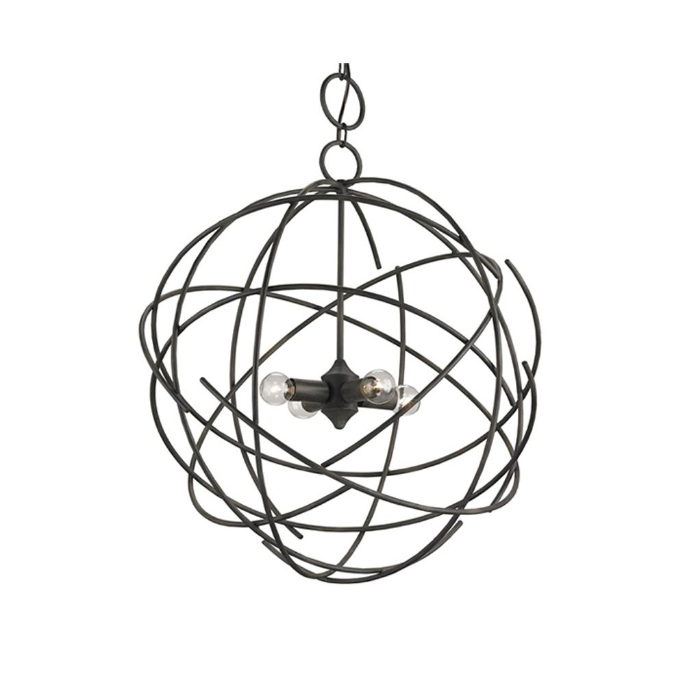 Mayfair finished iron orb-shaped chandelier with 4 lights. Includes canopy and 6' Mayfair finished chain. (Discontinued).