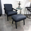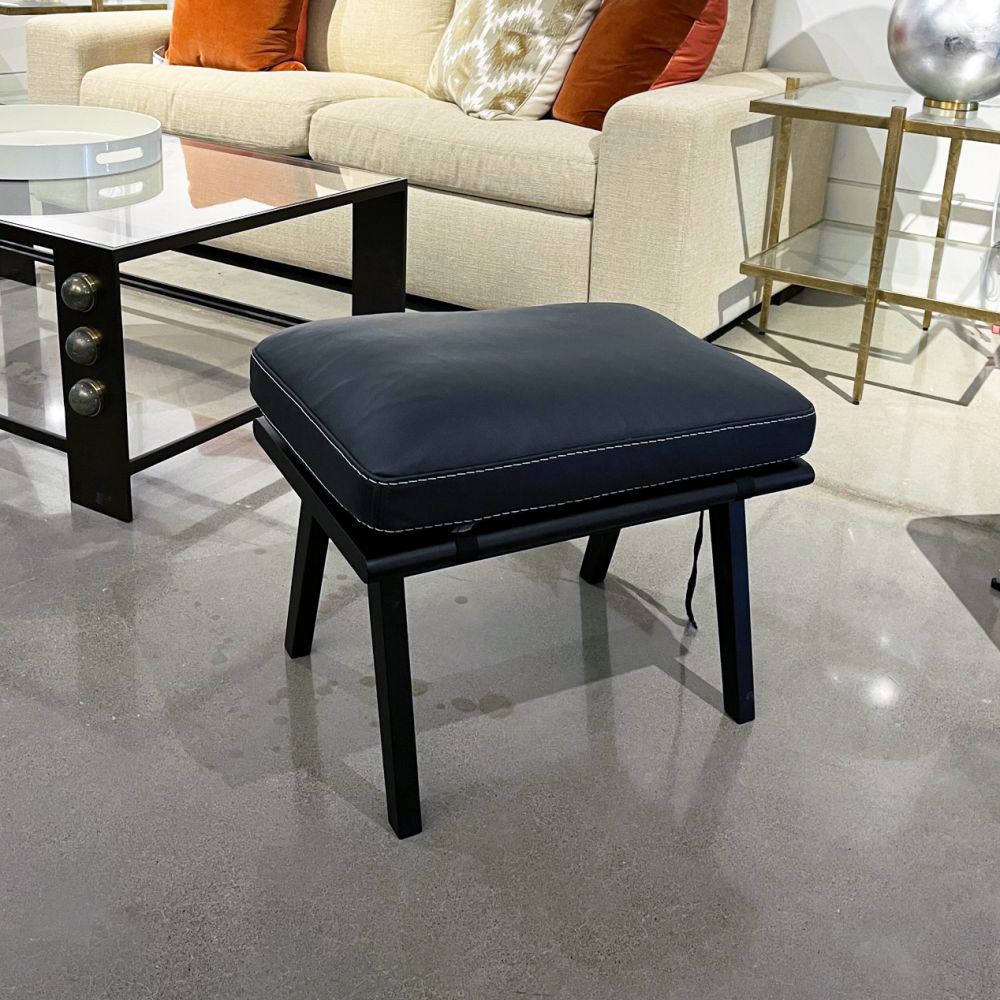 Black Oak ottoman with Meno Eclipse (gr. 20) leather covered seat cushion.