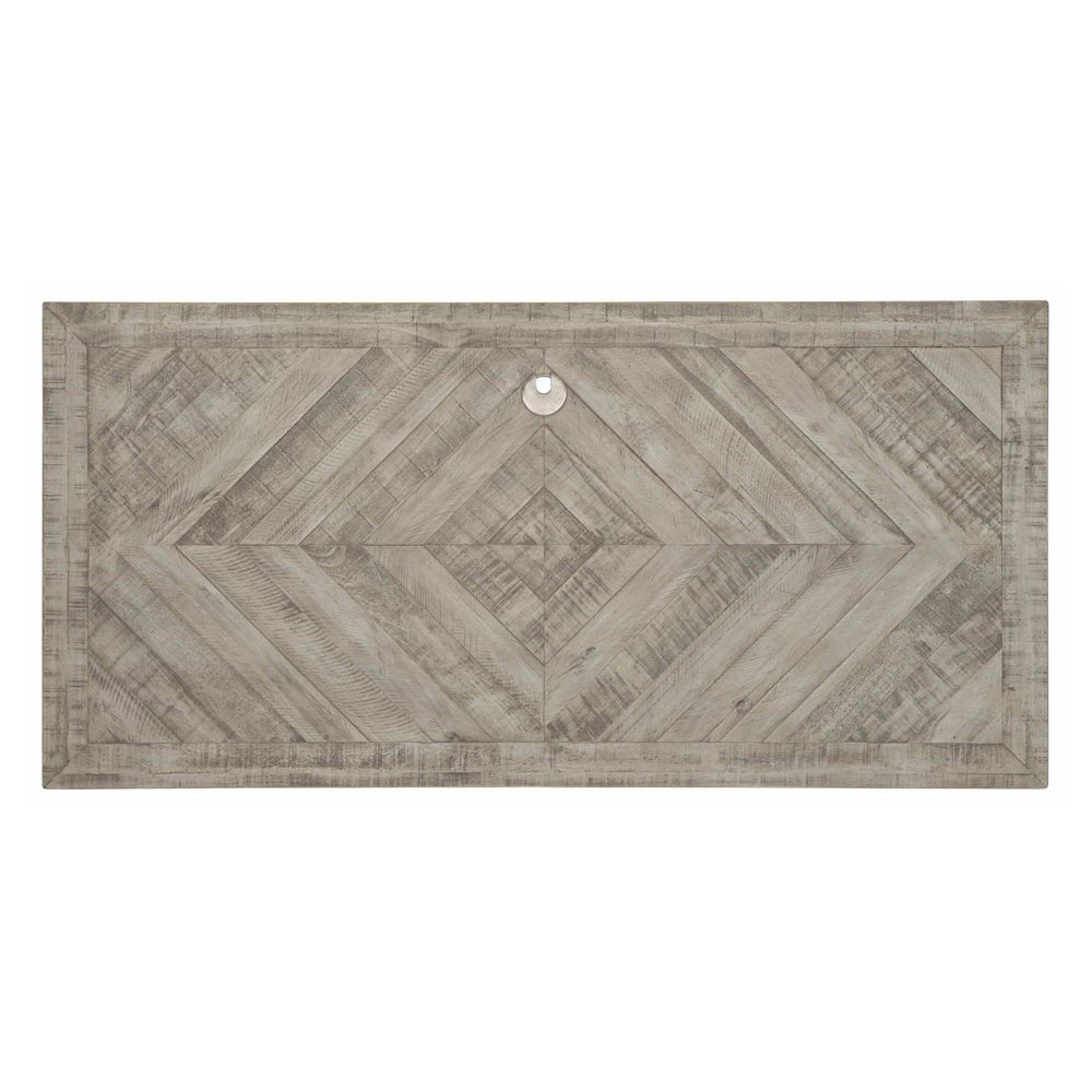Hand-planed Grey finished desk with glazed silver supports. Desk has a single drawer with grommet access to 2 USB ports and 2 power receptacles.