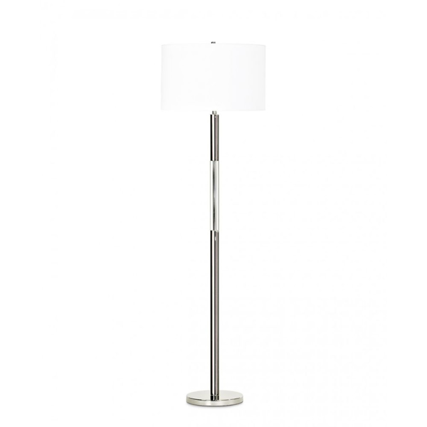 Polished Nickel and Crystal floor lamp with White Linen shade.Lamp: 150w E26 Edison with 3-way switch.
