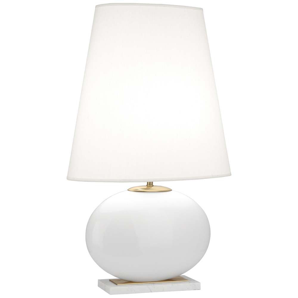 White Glass table lamp with Brass and White Marble accents and White fabric shade.Lamp: 1 x 150w A E26 bulb