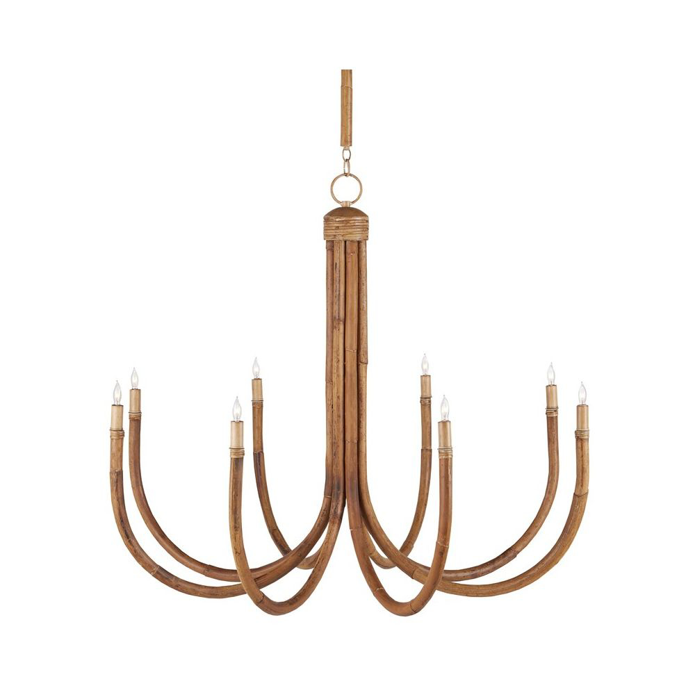 Rattan 8-light chandelier with rod-hanging system (6 - 12" rods included).