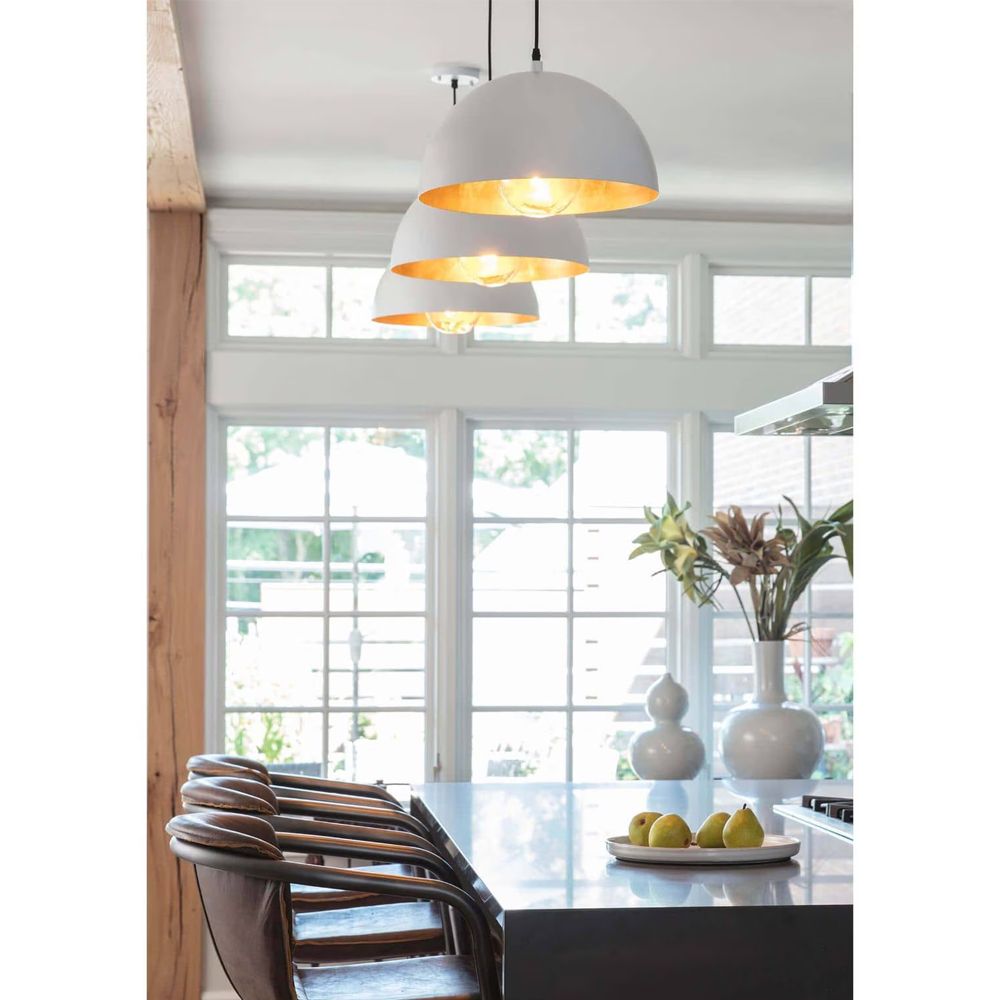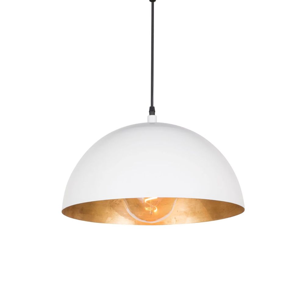 Dome shaped pendant with Gold Leaf interior and White exterior. Includes 10' cord and canopy for ceiling installation.