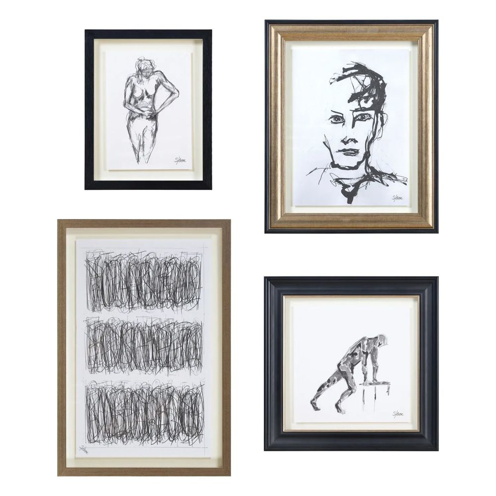 Set of 4 sketches set in black and gold wood frames.