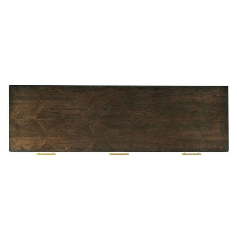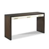 Three drawer hardwood waterfall style console in Mink finish (13) and Pearl White (61) drawer fronts and brass pulls.