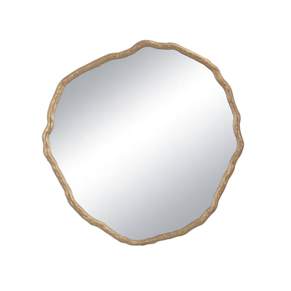 Irregular shaped mirror with Antique Gold finished resin frame.