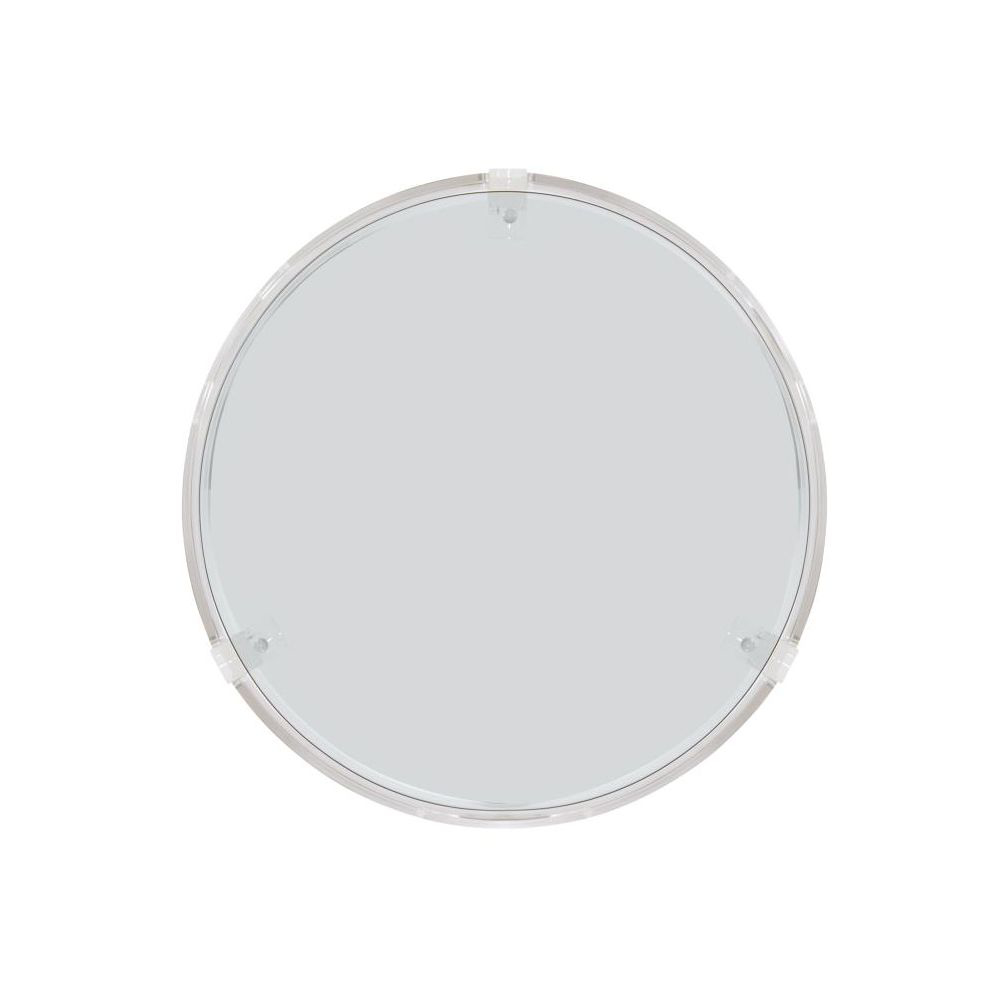 Round acrylic side table with clear tempered glass top.