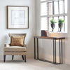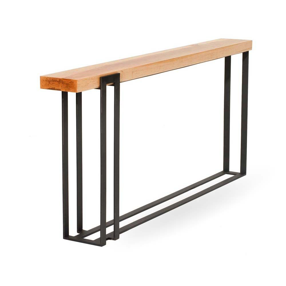 Wrought iron console table with Maple wood top. Available in a range of metal finishes and standard or premium finishes on Maple. Shown in Textured Black (83) metal finish and Clear Coat (CC) wood finish.