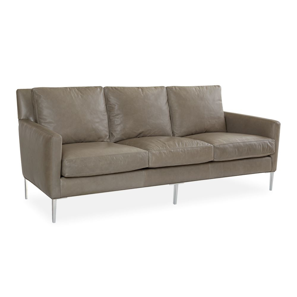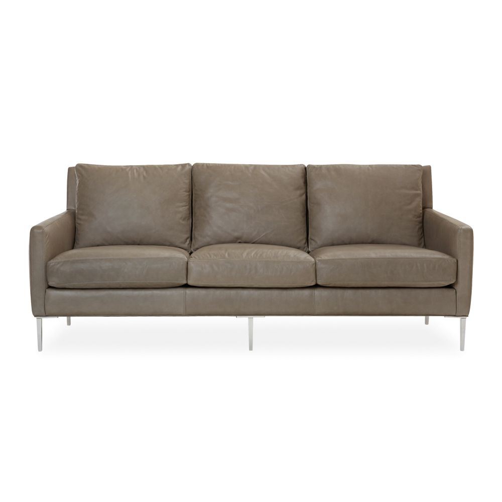 Loose back and 3-seat leather sofa. Standard with topstitching seams, polished metal legs, and down wrapped foam core back and seat cushion